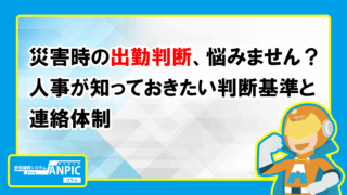 判断基準 企業 災害時の出勤判断、毎回悩んでいませんか?|人事が知っておきたい判断基準と連絡体制 災害が発生したとき、社員を出勤させるべきか、休ませるべきか――。人事担当者にとって、この判断は常に大きなプレッシャーを伴... 2025.09.12 判断基準 企業