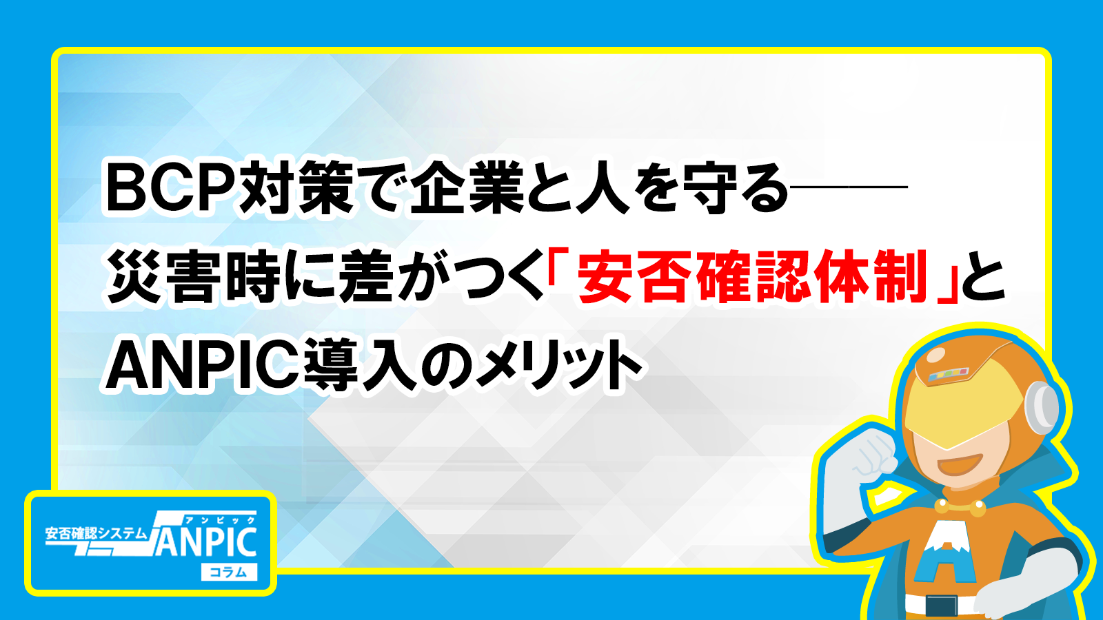 災害時に差をつける「安否確認体制」を実現する手段として、安否確認システム「ANPIC」を導入するメリット を詳しくお伝えします。