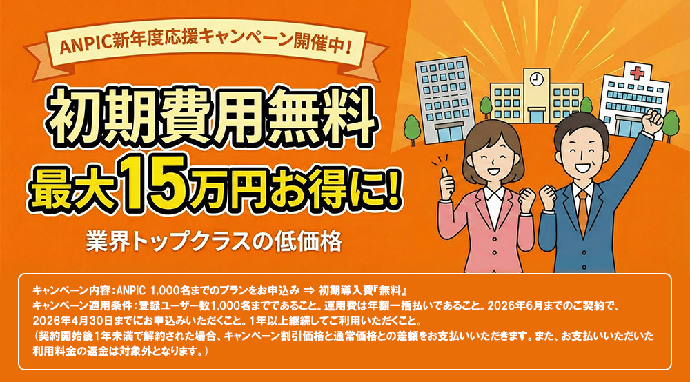 期間限定!登録ユーザー1000名までのプランを4月30日までにお申し込みいただくことで、初期導入費が最大15万円お得に!