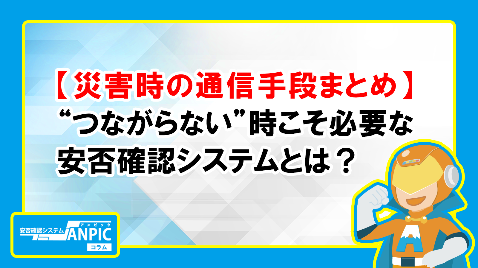 この記事では、災害時に使える通信手段の特徴と比較、そして“つながらない時でも安否確認を開始する仕組み”として注目されるANPIC(アンピック)の強みを解説します。