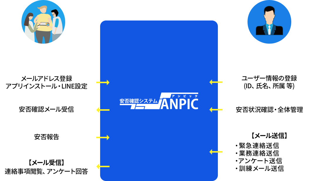 アバンセシステムは、安否確認システム「ANPIC」をご提案します。ANPICはインターネットを介して従業員が自身の安否を報告し、管理者が全体の安否状況を一元管理できるシステムです。